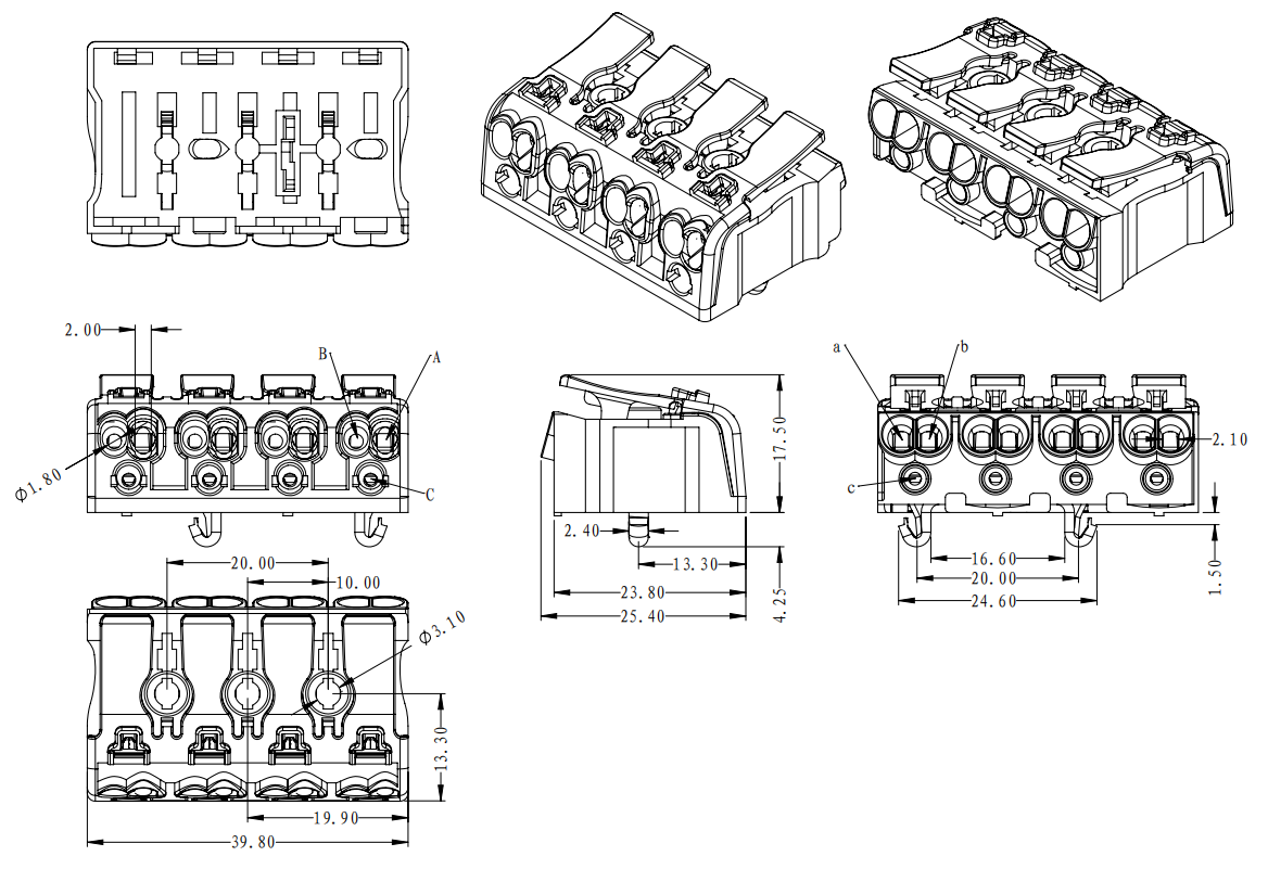 | 工廠側(cè) | A孔 | 實(shí)芯線 | 0.5-2.5mm2 | AWG 14-20 |